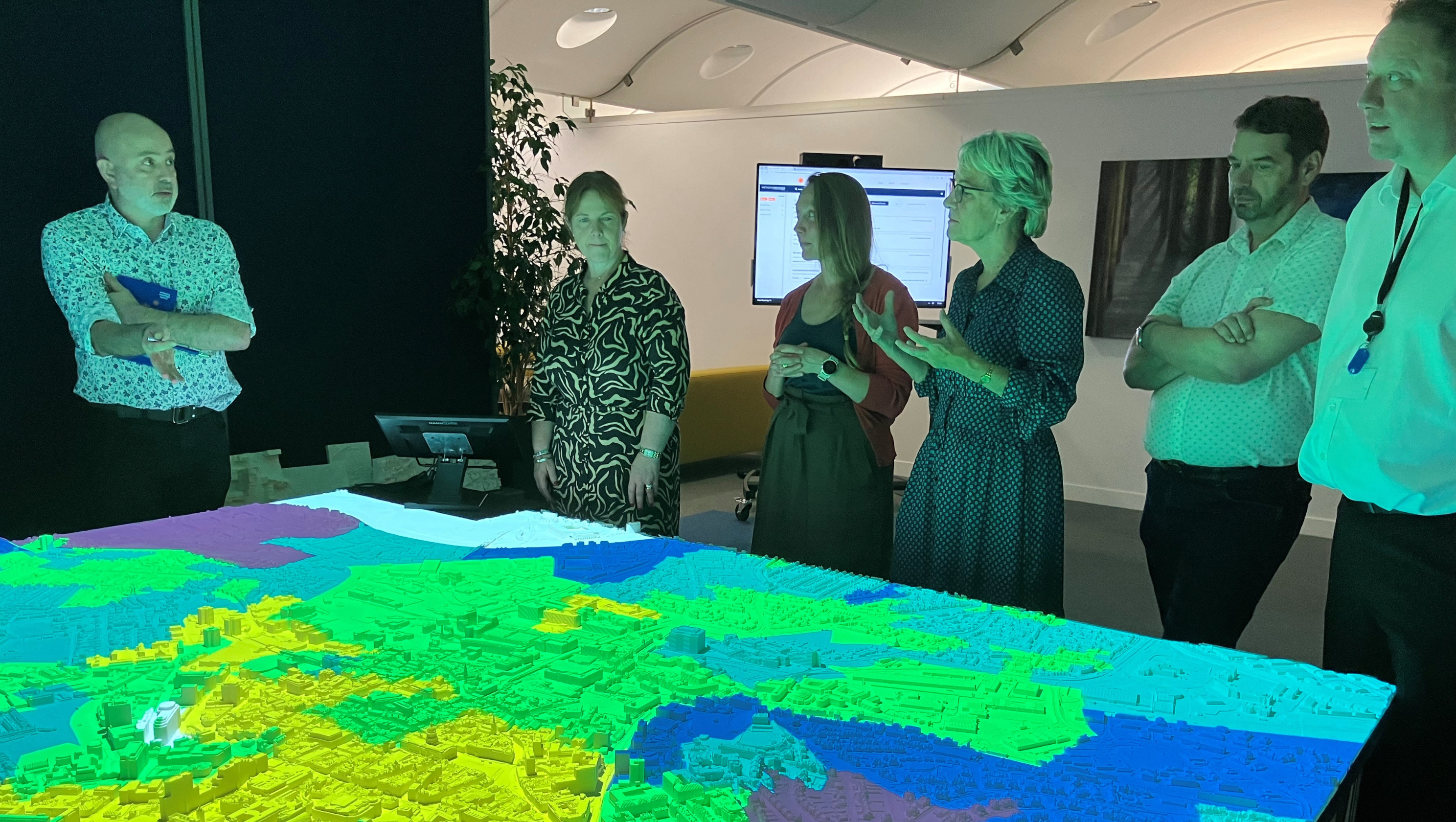 Both City as Lab and Collab have received national recognition and are scaling. One of City as Lab’s key assets, developed in partnership between Dr Gary Priestnall in the School of Geography and Nottingham City Council, is a unique 3D physical model of the city that can visualise place-based data in wonder-inspiring ways. Our large-scale Projection Augmented Relief Model (PARM) won the 2024 British Cartographic Society Award for ‘map of the year’ and helped Nottingham City Council win the prestigious ‘Geography in Government’ award for innovation. The unique ability of our models to reveal insights through the projection of spatial data has led to collaborations with organisations ranging from EMCCA, Experian, E.ON, City Arts and Nottinghamshire Police and Crime Commission to schools and voluntary organisations, in the latter case using PARMs of Bulwell and The Meadows to co-produce community stories. Through other tools, such as our City Data Connector, we are helping Nottingham’s bid to become a UNICEF Child-Friendly City, one of a number of ambitious and impactful projects bringing partners together across the city.
